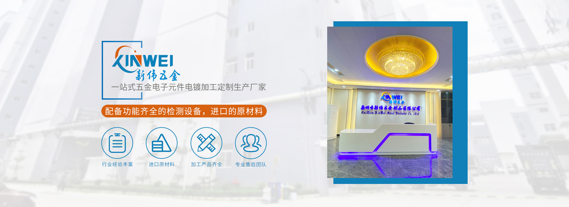 惠州市新偉五金制品有限公司(簡稱:新偉五金)坐落于中國廣東省惠州市,成立于2010年,是一家專業(yè)電鍍各種高品質(zhì)功能性的環(huán)保五金電子元件供應商,公司已通過ISO9001:2015及IATF16949:2016質(zhì)量體系認證。客戶至上,品質(zhì)至上,承蒙新老客戶的信賴,公司發(fā)展迅速,廠房車間面積10000平方米,現(xiàn)有員工200名,并擁有一批從事電鍍行業(yè)10年以上、經(jīng)驗豐富的技術(shù)骨干,為客戶解決許多疑難問題,另有一支品質(zhì)工程小組,專業(yè)檢測產(chǎn)品品質(zhì),杜絕不良品外流,深受客戶好評。